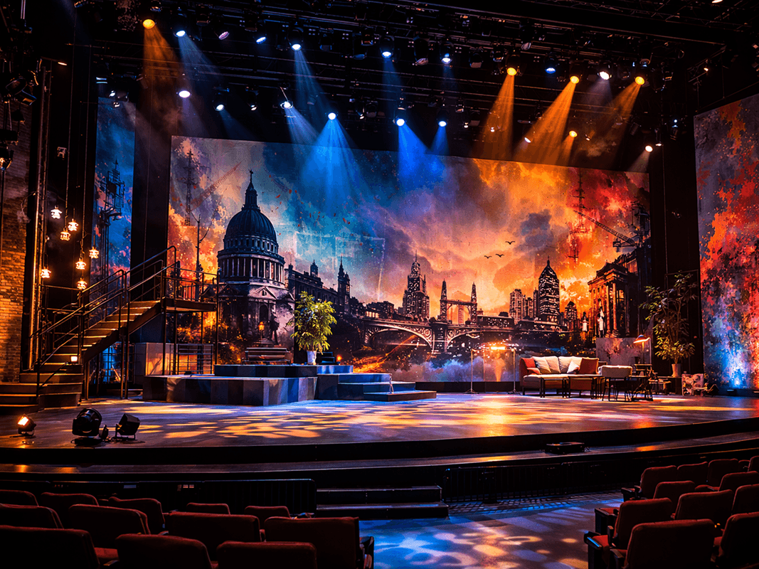Modern theatre graphics UK solutions are used across different types of productions.